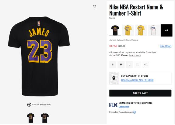| 标题: | Nike耐克NBA洛杉矶湖人队詹姆斯23号篮球短袖T恤5折$17.5 |