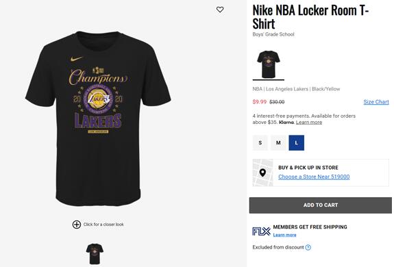 | 内容: | 目前champssports美国官网的这款Nike洛杉矶湖人队冠军总决赛大童款T恤,售价降至33折$9.99,约67元,新低价。不叠加额外优惠码。美国境内免邮,目前大童款S-L码起有货,娇小的妹子可以穿L码,适合凑单带回。 2020 NBA总冠军由湖人队拿下,湖人队史上17次获得总冠军了!!这款是NIKE官方推出的冠军TEE,不是随便印来卖的。NIKE官网也销售一空。球迷可收藏。