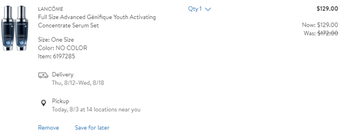 | 内容: | 网站需在境外网络环境下打开! nordstrom这款Lancome兰蔻小黑瓶50ml双瓶装,售价降至75折$129,美境免邮; 另外ND周年庆满赠好礼: -兰蔻订单满$37.5送自选彩妆6件套,两款可选,分别用码EYE或者BLUSH; -兰蔻订单满$125送正装大眼精华; Lancome这个小黑瓶精华套装不管是自留还是送人都很不错,这个套装包括2个正装的小黑瓶精华(50ml),小黑瓶精华是全球第一款以基因保养为主的精华肌底护肤产品,能够帮助后续护肤品的吸收,兼具修复与抗老的功效。