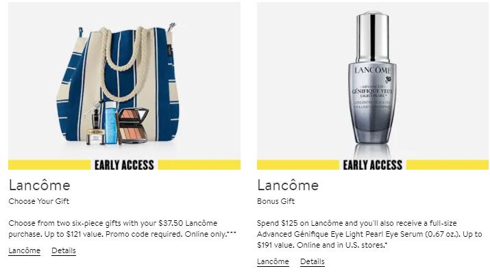 | 内容: | 网站需在境外网络环境下打开! ND周年庆精选兰蔻护肤满$37.5送7件套,两款可选,分别用码EYE或者BLUSH; 满$125赠正装大眼精华,总价值达191刀,无需用码 ,满额自动加车 。 购买任意美妆护肤满$150送护肤小样礼包,满额自动加车; 结算自选3件小样; 美国境内免邮。