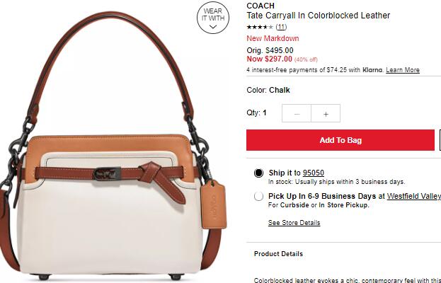 梅西百货这款Coach蔻驰 Tate 18 斜挎包奶茶拼色,售价降至6折$297,好价!美国境内免邮,需要手快啦!