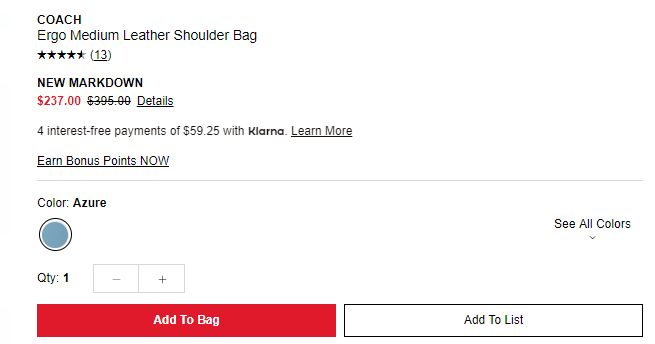 标题: COACH蔻驰Ergo 纯色月牙包降至$237
