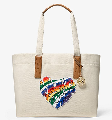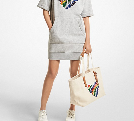 Michael Kors美国官网这款Michael Kors 大号爱心帆布托特包,售价降至5折$99,美国境内免运费;