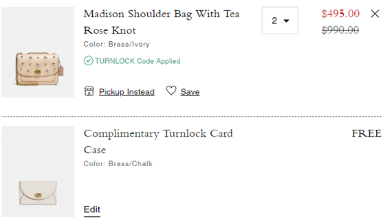 | 内容: | 网站需在境外网络环境下打开! Coach美国官网的这款Coach蔻驰Madison山茶花链条包有货,售价降至5折$247.5,美国境内运费; 另有满$250赠卡包,需要使用优惠码:TURNLOCK;(三选一,购物车自选) 新Madison茶香玫瑰链条包!象牙白配色,气质编织花卉浪漫春光,少女感十足看起来真的很好看呢! 配图来源网络,侵删!