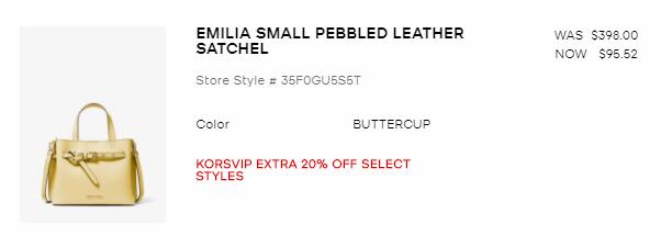 | 内容: | 网站需在境外环境下打开! 目前Michael Kors美国官网这款Michael Kors Emilia 小号手提包,售价降至3折$119.4,登陆会员,还叠加额外8折优惠,需用码:TAKE20;折后价$95.52,美国境内免邮; Emilia 手提包都非常实用,让您看起来最时尚。这款宽敞的粒面皮革款式非常适合日常使用,配有腰带和金色细节,彰显时尚优雅。取下肩带并使用顶部提手提携。