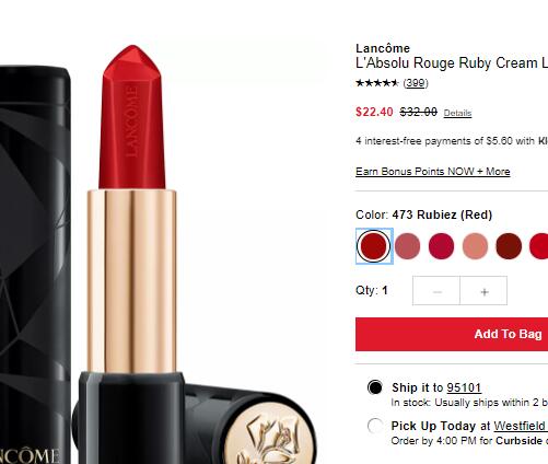 | 内容: | 网站需在境外网络环境下打开! 梅西百货这款LANC?ME兰蔻La Absolu宝石唇膏 多色有货,售价降至7折$22.4,可叠加以下满赠: -满$39.5赠菁纯6件套(抗衰、菁纯二选一); -满$80送眼唇卸3件套(蓝水、粉水二选一); -满$125送自选正装6.7oz一个(GALAT?E CONFORT温和卸妆乳、CR?ME RADIANCE柔肤洁面、MOUSSE RADIANCE洁面摩丝、MIEL EN MOUSSE蜂蜜卸妆?喱四选一); Lancome兰蔻新品 Rouge Ruby 宝石唇膏,膏体是不规则切割面,而且口红中真的添加了宝石成分,质地是滋润的奶油膏体,上嘴很顺滑很有光泽感。