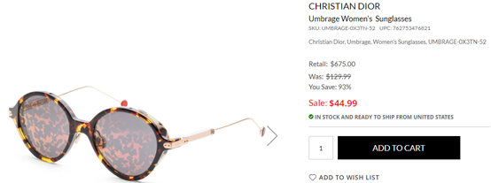 | 内容: | Ashford这款Christian Dior 迪奥暗纹印花 圆框女士墨镜,售价降至0.7折$44.99,近期好价!满$99美国免邮,需要可入。 还可用码“BACKTOSCHOOL”叠加额外89折,小编测试不可用,大家可尝试; 52mm超大镜框不仅可以修饰脸型, 还显脸小,独特的暗花镜片设计彰显时尚魅力!