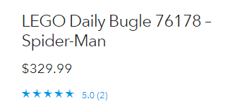 | 标题: | LEGO乐高 Daily Bugle 蜘蛛侠 76178 3772块售价$329.99 |