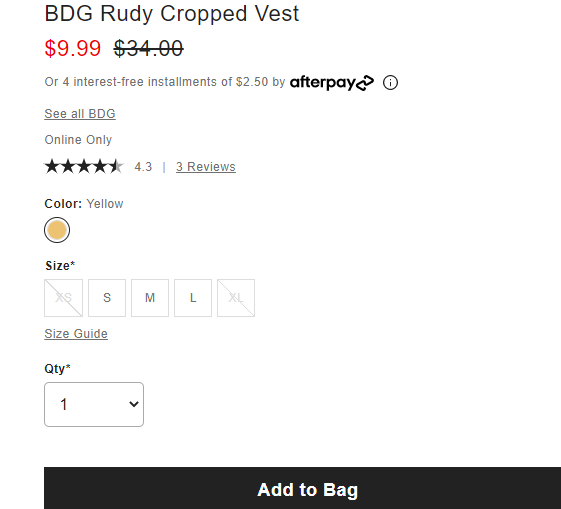 目前Urban Outfitters美国官网的这款BDG Rudy 短款拼色背心,售价降至3折$9.99,目前S/L/M有货,美国境内满$50免邮,适合凑单带回。