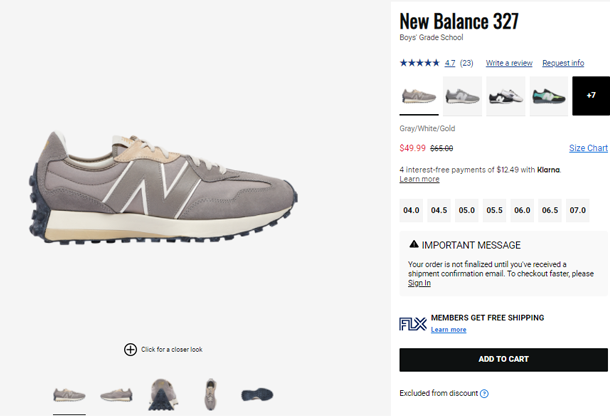 | 标题: | New Balance新百伦327大童款款灰白金复古休闲跑鞋77折$49.99 |