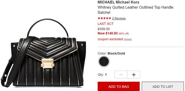| 标题: | 补货!MICHAEL Michael Kors Whitney黑金秋千包4折$140.93 |