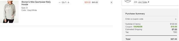 | 内容: | FinishLine现有NIKE SPORTSWEAR RALLY女款帽衫,灰色款售价降至3.1折$20(约136元),无需用码,直接显示优惠价,目前仅xs和s码有货,优惠随时可能失效,非正价商品美国境内需$7运费。 此外还可以凑单使用折扣码,折后价格更低: -用码可享满$100减$10:“10GREEN” -用码可享满$150减$15:“GOLD15”【以上优惠码有效期至2019年04月02日中午左右】 这款运动帽衫,时尚休闲,百搭实用,穿着舒适,不论是出门跑步运动或日常穿搭都很合适。