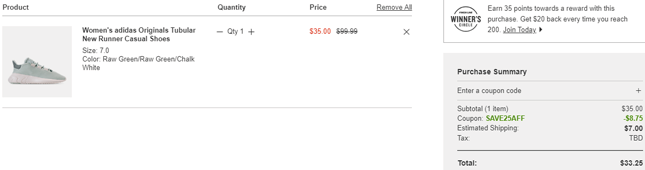 | 内容: | FinishLine现有精选专区额外7.5折促销,优惠码“SAVE25AFF”; 这款adidas Originals Tubular New Runner女士运动鞋,售价降至35折$35,用码折后价$26.25,美国境内每单需要$7运费;目前女士7码起有货。