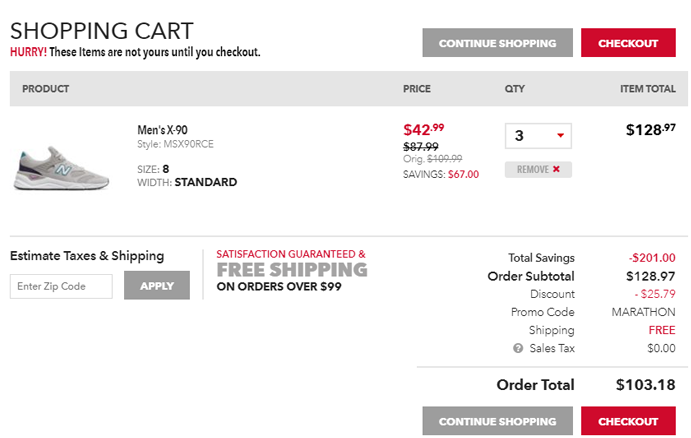 | 内容: | Joe's NB Outlet现有全场鞋履满$100享额外8.5折、满$125享额外8折促销,需用码:“MARATHON”; 这款New Balance 新百伦 X-90 系列 LIFESTYLE 男士运动鞋售价降至$42.99,还可叠加满$125额外8折促销,用码:MARATHON,加入购物车3双,每双折后价$34.39,美国境内免邮,预估发货重量2磅,转运到手约310元,目前7.5-14码有货; 活动截止至北京时间2019年5月1日中午; New Balance x90是New Balance推出的一款现代化流线造型的运动鞋款。鞋款的外形使用了NewBalance调校的最为经典的灰色鞋面,由各种不同材质的皮革拼接网眼组成,同时,鞋面N字Logo的由3m反光材质描边,搭配渐变色中底,将复古配色呈现在现代化鞋型上,十分和谐。