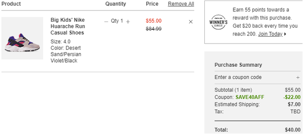 | 内容: | 目前finishline终点线现有精选产品额外6折促销,需用码:SAVE40AFF;有效期至北京时间4月24日; 其中这款Nike 耐克Huarache Drift 华莱士大童款运动鞋,粉紫色款售价降至65折$55,用码实付$33,目前Big 4码起有货。美国境内运费需$7,另外黑粉色折后价$36也算是好价,适合凑单购买。 这款是华莱士的全新升级版本,经典的鞋型设计,相较于之前鞋形更为修长扁平。可拆卸的弹力绑带取代了鞋带的作用,整体设计无疑比原本的 Air Huarache 更显质感,且绑带还增加了鞋款的穿搭灵活性。相对于原本的版型,后跟的TPU支架保留,再加上3M反光细节的鞋带酷酷的配色,超级百搭!