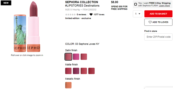 目前丝芙兰美国新上了Sephora自营品牌唇膏口红,售价仅$8,8个色号可选;