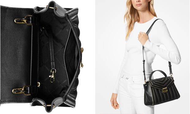 | 内容: | 目前梅西百货的这款MICHAEL Michael Kors Whitney黑金秋千包,售价降至2.5折$86.96,比之前爆料降了50刀左右,美国境内免运费,预计发货重量3磅,转运到手约745元。 梅西百货海淘不算友好,有一定砍单几率,老司机上或者找代刷; 这款MICHAEL KORS Whitney 黑金秋千包,由真皮材质制成,耳朵包造型,别致可爱。翻盖插扣开阖,造型别致的锁扣刻有品牌LOGO,精致亮眼。顶部设有皮质提手,搭配可拆卸肩带,使得包包手提斜挎均可。底部四角设有铆钉,可减缓包包在使用过程中的磨损。