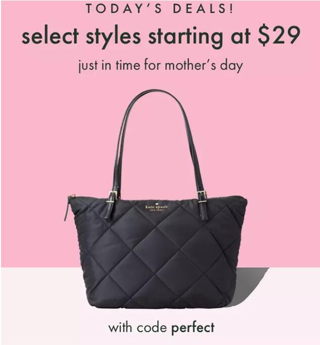kate spade官网现有母亲节精选包袋低至$29起促销,需用码:“PERFECT”;