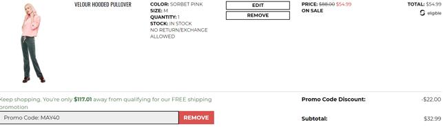 | 内容: | Juicy Couture美国官网现有全场服饰额外6折促销,需要使用优惠码:“MAY40”; 订单满$150美国境内免运费;活动截止时间未注明; Juicy Couture的天鹅绒衣很多明星都爱穿,已经是私服必备了,剪裁很合身,上身时尚,色彩鲜艳,感兴趣的网友可以关注。