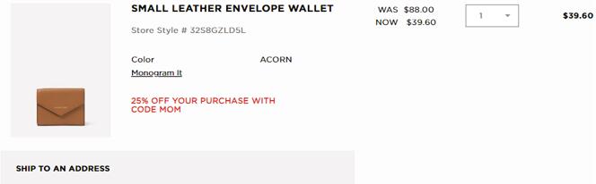 | 内容: | MICHAEL KORS官网目前有全场包袋额外75折促销,需用码:“MOM”; 这款MICHAEL MICHAEL KORS小号皮质钱夹,目前售价$52.8,用码折后$39.6(约268元),美国境内免邮,国内同款售价1200-1500元左右; 美国境内免运费,需登录KORSVIP会员才能享受折扣(点击注册); 此款 B小号皮质钱夹采用皮革制成,采用简洁的信封造型。内部有多个隔层,可用于收纳卡片、现金和证件。独立拉链小包非常适用于存放零钱,可将它放入手袋中,简单大方。
