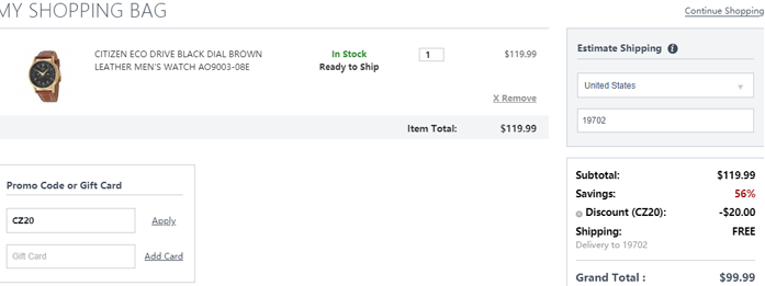 | 内容: | 目前Jomashop网站现有Citizen 西铁城Eco Drive系列 AO9003-08E 男士光能腕表售价降至$119.99,可叠加优惠码“CZ20”,立减$20,折后实付$99.99,美国境内免邮,转运到手约750元; 活动日期截止至北京时间2019年5月16日11点58分; 这款Citizen 西铁城Eco Drive系列 AO9003-08E 男士光能腕表采用玫瑰金色不锈钢表壳, 防水深度为30米,抗划伤的矿物晶体镜面,搭载环保驱动机芯,银白色阿拉伯数字刻度标记加上玫瑰金色指针标识,另有2个小表盘,表外圈有精密刻度标记,玫瑰金色表外圈搭配上黑色表底,高级感满满,搭配的是棕色纹理皮质表带,超级有质感的!很能够凸显气质和品味哦!