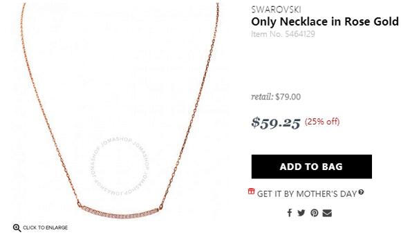 | 内容: | 目前Jomashop的这款Tiffany同款!Swarovski施华洛世奇笑脸带钻项链,售价降至75折$59.25(约401元),订单满$100美国境内免邮,另外还可叠加满减优惠码,网友可根据自己选择使用: 1、无门槛5美金优惠券,折扣码“55HTFS5”; 2、美国包邮折扣码“FREESHIP”; 3、满$180立减$10,折扣码“55HTFS10”; 注:折扣码不叠加,根据需要选择即可; SWAROVSKI 施华洛世奇首饰一直都是很多女生倾心的扮美佳品,价格不会高得难以承受,款式又时尚、精致、高端、美丽,也是明星们出入各种场合经常佩戴的饰品。这款Swarovski施华洛世奇笑脸带钻项链,采用施华洛世奇水晶制成,简约时尚,优雅百搭。