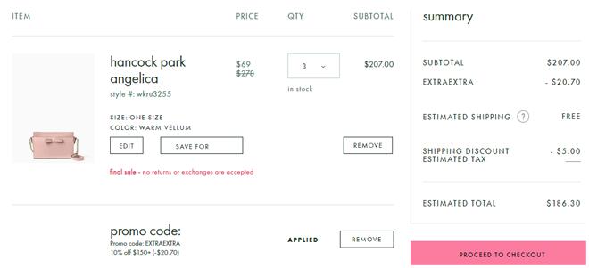 | 内容: | 5月13日更新: kate spade美国官网现有 惊喜特卖会低至2.5折,价格直接页面显示; 另有套包专场低至$29,需要折扣码“MAKEITTWO”,都是一些大包+小包组合的款,合适入手; 订单美国包邮,截止日期为5月20日。