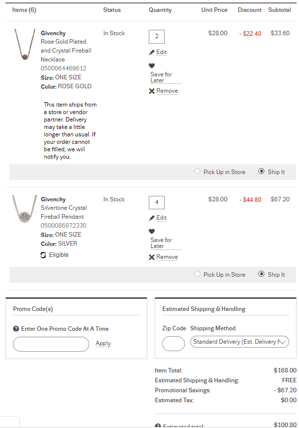 | 内容: | Lord & Taylor 现有服饰鞋包满$50享7.5折,满$100享7折,满$150享6折活动,无需用码,加入购物车显示折后价; 其中这款Givenchy纪梵希火球玫瑰金锁骨链(金色 | 银色),售价$28,凑单叠加6折优惠,折后一件实付$16.8(约116元),近期好价,有需要的可入; 订单满$99美国境内免运费,适合凑单带回。 这款纪梵希许愿球玫瑰金锁骨链,带有施华洛世奇元素,链子带有3个搭扣,可调节选择佩戴长度。 网站海淘建议使用pp支付,通过的可能性更大,或者直接找代刷;进入网站后显示人民币的,记得切换国家到美国;