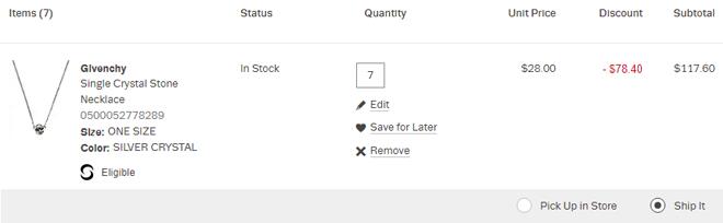 | 内容: | Lord & Taylor现有服饰鞋包满$50额外7.5折、满$100额外7折、满$150额外6折促销,其中的这款纪梵希的圆形单钻锁骨项链银色还有货,售价$28,凑单折后$16.8(约115元),有需要的可入; 满$99免美国境内运费,优惠随时可能结束。 这款项链是由纪梵希的合金链子和施华洛世奇的水晶构成的,档次在线,万能百搭款简单大方,单钻真的很闪,适合夏天佩戴。