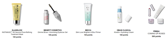 目前丝芙兰美国目前积分兑换专区再次更新,新增100积分兑换GLAMGLOW 60秒紫色泡沫面膜小样和贝玲妃Gimme Brow+增量立体塑形眉胶小样;500积分兑换FRESH套装;