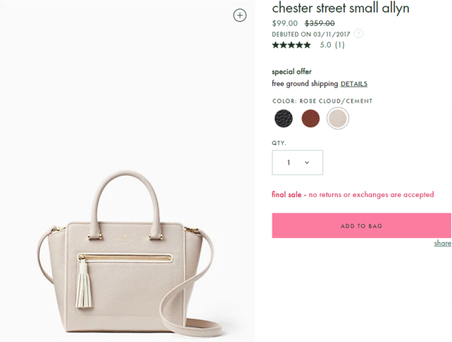 | 标题: | Kate Spade chester street small allyn手提单肩包限时特价$99 |