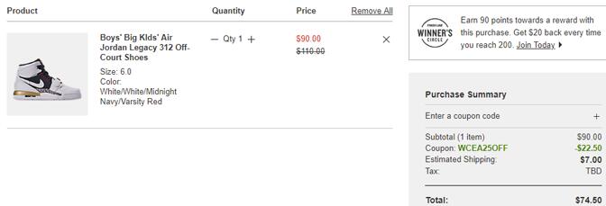 | 内容: | FinishLine美国官网的这款Air Jordan乔丹 Legacy 312大童款篮球鞋白棕美国队,售价降至81折$90,还叠加专场75折优惠,需用码:“WCEA25OFF”;折后价$67.5,美国境内运费一单$7,一双转运到手约635元,目前Big 6码起有货。 这双球鞋以奥林匹克运动会中美国队配色为灵感,样式有点像 Micheal Jordan 时期的“梦一队”所穿着的 Air Max 180 国家队配色。鞋面主要为白、蓝、红三色,外侧底部保留了经典爆裂纹样式,鞋后跟添上了一抹金色,复古中又带有浓厚潮流气质。