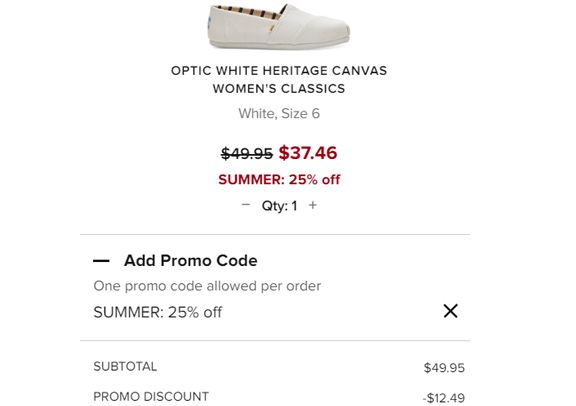 TOMS官网现有全场鞋履额外7.5折促销,需使用优惠码:“summer”,常规活动;