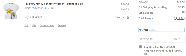 | 内容: | shopDisney网站现有精选亲子装买一件第二件半价促销,无需用码,加入购物车显示折后价; 另有精选泳衣等海边用品低至6促销,价格显示在页面处,专区直达>>> 参加折扣商品页面标有“Buy One, Get One 50%”; 订单满$75美国境内免邮,需用码:SHIPMAGIC; 活动截止时间未注明;
