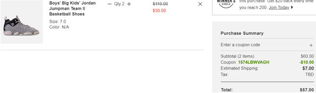 | 内容: | 目前finishline终点线这款Jordan乔丹Jumpman Team II大童款运动鞋,售价直接降至2.8折$30,还可凑单叠加满$60减$10优惠,需用码:“1574LBWVAGH”,此款加入购物车2双,用码折后一双$25,新低价。目前仅Big 7码有货。美国境内运费需$7,适合凑单购买。 若点进去看不到该产品,在搜索栏输入“820273 020”即可找到; 首次亮相于1998 年,Jordan Team 2 在延续上一代球鞋局部元素的同时,将 Air Jordan 13 经典的皮革鞋面元素和猫眼 Jumpman Logo 融入。但今年的复刻版本将替换 Air Jordan 13 风格的 Jumpman Logo,改以 Air Jordan 14 的法拉利盾牌风格呈现。