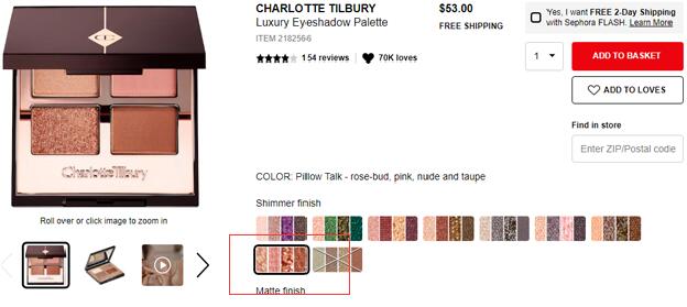 | 内容: | 目前丝芙兰美国的这款Charlotte Tilbury限量四色眼影盘Pillow Talk补货,售价$53;