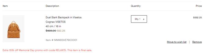 | 内容: | MCM Worldwide官网现有年中大促,精选美包、配饰等低至6折,无需折扣码,价格直接显示在页面; 另外,网站还可叠加额外85折优惠,需用码“RELAX15”,折后价更低; 美国境内免运费。 活动随时可能结束。 MCM始创于德国,最早以制作皮具发家,MCM皮具最大的特点是纯手工制作,而且每一件产品上有一个铜牌,上面印有独一无二的编号。每一件MCM产品上都有不同的编码,也就是说你的买到的MCM是独一无二的。