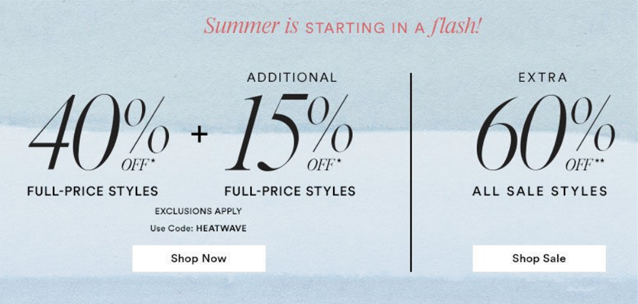 | 标题: | Ann Taylor官网现有正价服饰额外6折+额外8.5折促销折扣区额外4折 |