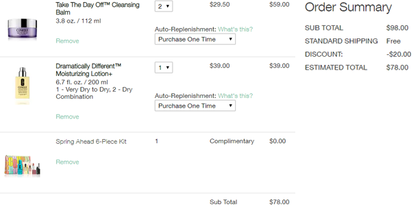 | 内容: | Clinique倩碧官网全场护肤最高满$75减$20促销,具体为: 订单满$40减$5,需用码:“FIVE”; 订单满$55减$15,需用码:“FIFTEEN”; 订单满$75减$20,需用码:“TWENTY”; 另外订单满$55送6件套礼包,满额自动加车,具体如下图所示; 注:折扣码不可叠加,个别商品不参加活动,以加入购物车为准; 活动截至北京时间5月31日中午; Smart Rewards会员任意订单免运费,戳这里免费注册。注册Smart rewards账户后登录,点击shop now就可以激活任意单免邮哦!结账时会去掉邮费。