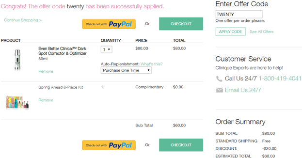 | 内容: | 目前Clinique倩碧美国官网现有阶梯满减促销,这款Clinique匀净卓研淡斑双效精华 50ml,售价$80,叠加用码:“TWENTY”享满$75立减$20,折后实付$60(约415元); 另外订单满$55加送6件套礼包,满额自动加车; Smart Rewards会员任意订单免运费,戳这里免费注册。注册Smart rewards账户后登录,点击shop now就可以激活任意单免邮哦!结账时会去掉邮费。 这只精华是双管的,用过的亲都知道刚开始的时候,按压会不均匀,有可能一头不容易按压出来,不用着急,用力多按压几次就可以了,白管蕴含倩碧的灵魂淡斑修复精华其效果可以媲美皮肤学专业淡斑,绿管含有京都玉露,其主要成分茶氨酸有抗刺激以及抵御外界能力。
