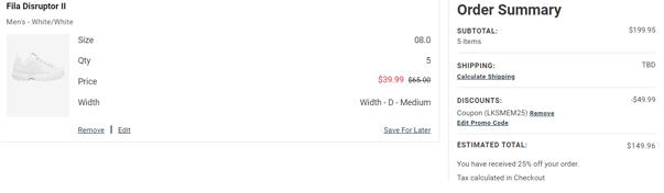 | 内容: | Eastbay官网全场服饰鞋包阶梯满减促销还在: -无门槛额外8.5折优惠码:LKSMEM15; -满$99额外8折优惠码:LKSMEM20; -满$199额外7.5折优惠码:LKSMEM25; 其中这款FILA斐乐 Disruptor II 2代 老爹鞋男款参加折扣,售价降至61折$39.99,加入购物车2双用码,还可叠加额外8.5折优惠,折后$29.99,美国境内免运费,预估发货重量3磅,凑单转运到手约327元。目前7.5码起有货,尺码齐全。 随去年“老爹鞋”大火,之后各大品牌都相继出了自己的款,FILA家的老爹鞋可以说是非常简约清新派的了。