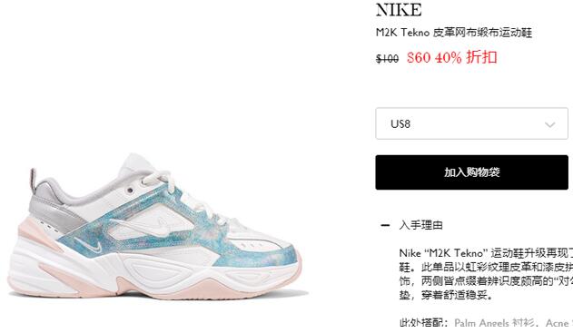 | 标题: | NIKE M2K TEKNO老爹鞋新配色特价$60 |