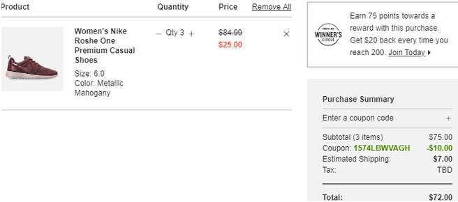 | 内容: | FinishLine美国官网的这款Nike Roshe One Premium 女款休闲鞋,红色款售价降至29折$25,还叠加全场满$60立减$10优惠,需用码:1574LBWVAGH;加入购物车3双,用码每双折后价$21.67,美国境内运费一单$7,凑单转运到手约215元,目前女士6码起有货。 这款Nike耐克Roshe One是最火爆的Roshe休闲鞋,配色鲜艳明亮,软性透气的网布面料,良好的包裹脚丫的同时给予足够的支撑,轻量级EVA泡沫鞋底夹层增加了行走的舒适性。