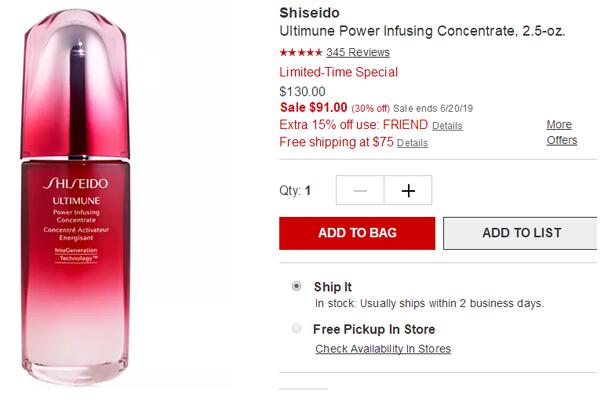 | 内容: | Macys梅西百货这款Shiseido资生堂 红腰子精华75ml,售价7折$91,美国境内满75美金免邮; 红妍肌活脸部精华露,作为世界首款可提升肌肤免疫力的精华露,帮助恢复肌肤天然的免疫机能,从根本上改善肌肤。阻断反复出现的肌肤烦恼、强健肌肤体质,使肌肤在面对外界伤害时具备更好的防御能力,肌肤更为不容易产生色斑、皱纹、松弛等问题,业界首款预防性精华。感受肌肤开始变得极致光滑柔嫩;逐渐发现肌肤抵抗伤害能力增强,问题不再反复发生;持之以恒,肌肤整体状态提升,即使岁月流逝也一样维持美丽动人。