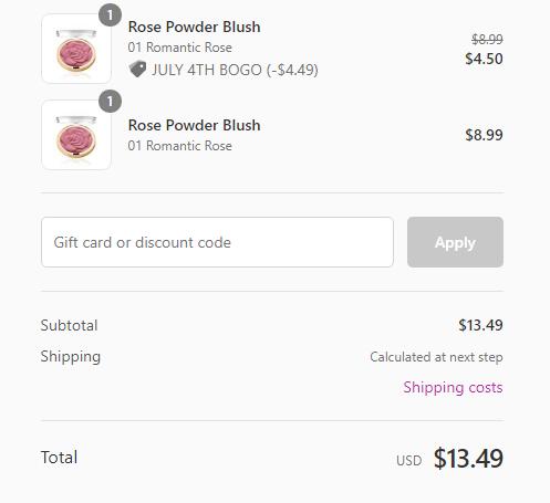 | 内容: | Milani美国官网现有Independence Day独立日精选彩妆第二件半价,无需使用折扣码,加入购物车2件显示折后价,相当于75折,可收玫瑰浮雕花瓣腮红、定妆喷雾等; 订单满$35美国境内免邮,折扣至北京时间7月8日中午; Milani 在被称为平价 MAC,其产品品质及口碑都不错。Rose Powder Blush 玫瑰花瓣腮红被众多国内外美妆博主强烈推荐,17g的超大容量是普通腮红的4.5倍,耐用性价比高。粉质细腻轻盈,他家的定妆喷雾也是tati的心头好。