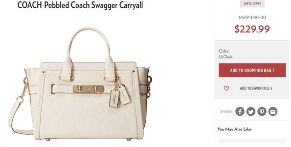 | 标题: | COACH 蔻驰 Pebbled Coach Swagger Carryall 女款单肩包4.6折$229.99 |