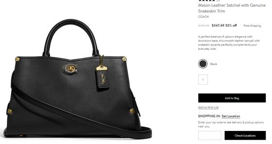 | 标题: | Coach蔻驰Mason手拿包5折$347.49 |