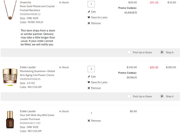 | 内容: | 评论 Lord & Taylor现有全场精选品类6折促销,需用码:“SUMMER”; 另外美妆护肤类产品购满$100立减$20,需用码:‘SUMMER’;折扣码可一起叠加使用; 另外,美妆各大品牌还有满赠好礼>>>> 订单满$99美国境内免运费,美妆类满$49免邮。 活动截至北京时间7月17日中午; 这个网站海淘不友好,建议老司机上或者找代刷。