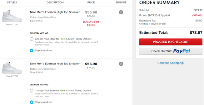 | 内容: | Famous Footwear官网现有全场鞋履买一件第二件半价促销,无需用码,加入购物车显示折后价,且叠加全场满$50立减$10优惠,需用码:ENTR2018; 其中这款Nike耐克 EBERNON MID男子高帮板鞋,浅灰色款售价降至75折$55.98,加入购物车2双,用码每双折后价$36.98,会员美国境内免邮,转运到手约340元,目前男士7码起有货。 Nike Ebernon Mid 男子运动鞋采用利落包边外底设计,铸就非凡抓地力,演绎 80 年代经典篮球风格外观和质感。鞋面缝线设计沿袭自复古篮球鞋款,彰显出众球场风采。