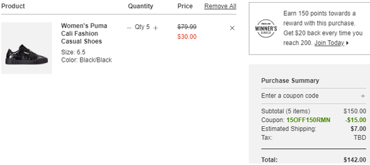 | 内容: | FinishLine美国官网的这款Puma California Croc Casual女款休闲鞋 ,黑色款售价降至37折$30,凑单5双,用码“15OFF150RMN”参加满$150减$15优惠,每双折后价$27,美国境内运费需$7,转运到手约288元,目前女士6码起有货。 另外此款也参加全场满$100减$10优惠,需用码:10OFF100RMN;网友可根据自己情况选择使用。 最近 Puma 一直在主推这款拥有复古网球外型的 PUMA Cali,以加州阳光海滩为主题的厚底美鞋 Cali 源自于80年代的鞋款 PUMA California,重新翻玩注入当代新女力的大胆无畏态度,采用厚底设计搭配俐落皮革鞋面,由傻脸娜亲身拍摄诠释,巧妙拼接对比色块,展现女孩独有的自信美丽。